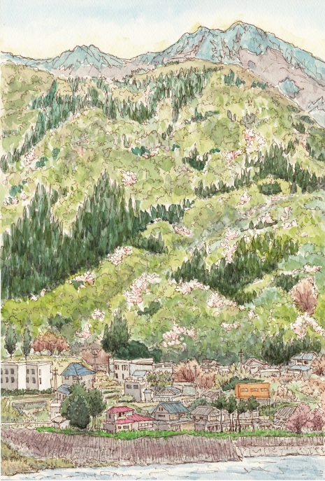 | 木々の芽吹きと山桜の薄いピンクがとてもきれいで、思わず車を止めてカメラのシャッターを下ろしていました。 この時期の山の風景が生命力を感じて一番好きです。 このモチーフでいつか大きな絵を描いてみようと思います。 川の右岸・左岸は下流に向かって右・左のようです。 今回初めて知りました。 |