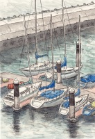 | 別府温泉のホテルの窓から見えたヨットハーバーです。 技術もうまさも感じられないただ描いただけの絵になってしまいました。 好きなモチーフですので何回も描き直してみたいと思っています。 少しずつでも上達するのを願いながら‥‥ |