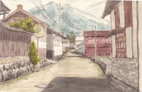 | 水彩画のページは作ったのに掲載できるような作品はいまだ描けていませんが、一点もないというのもおかしいので、急きょ描いてみました。 風景(1)です。 以前に描いたスケッチと残っていた写真を参考に描き直しました。 一時期、2〜3年ほど水彩画教室に通っていまして野外スケッチなど何枚も描いてはいるのですが、どれもこれもとてもご披露できる絵ではありません。 これから練習して掲載できるような絵を描けたら載せていきたいと思っています。 |